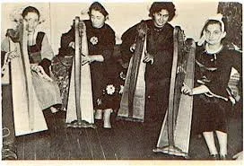 TELENN BLEIMOR / groupe de harpeurs* 1954 1962 au Congrès Interceltique de Tréguier De g. à droite : Rozenn Guilcher, Brigitte Baronnet, Madalen Buffandeau, Armel Le Sec’h