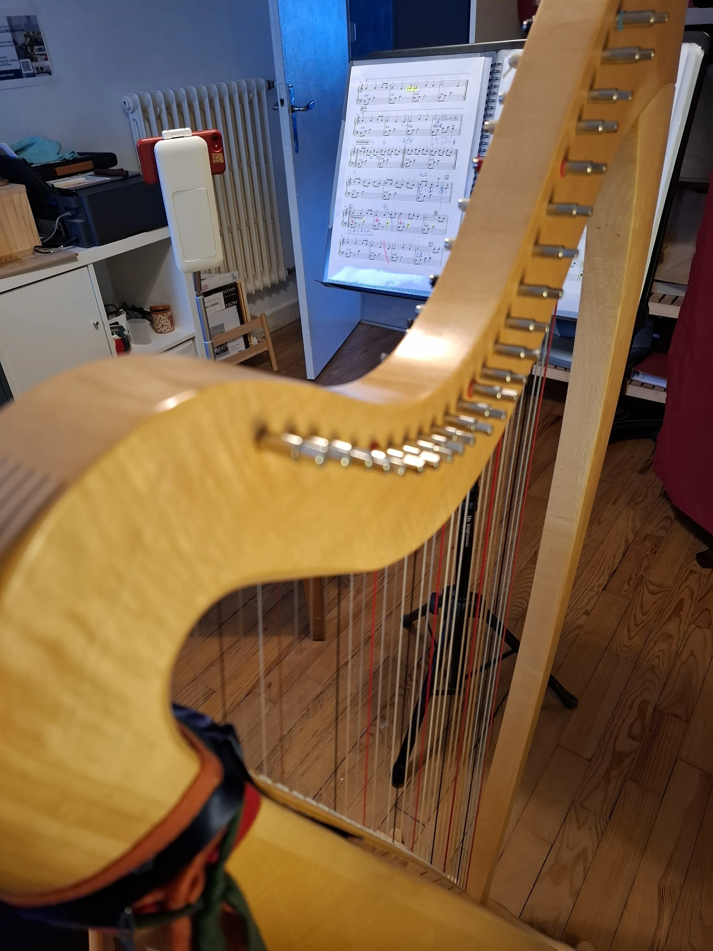 Teaching Celtic harp via video conferencing: the smartphone mounts I use