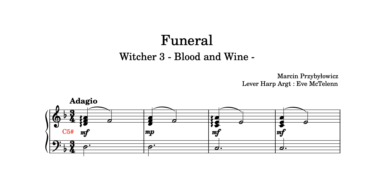 Funeral is a delicate, deeply emotional piece, subtly woven into the universe of The Witcher 3: Blood and Wine. Its atmosphere conveys sorrow, loss, and remembrance — universal themes that resonate profoundly with the player, without revealing the specific storyline it accompanies.