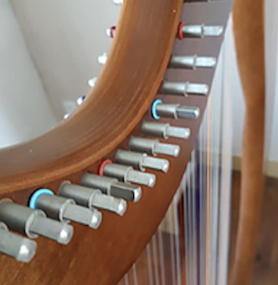 Harpy Rings are small red and blue rings designed to be placed to the right of the tuning peg on your harp. Their purpose? To help you instantly identify the correct peg and avoid mistakes while tuning.