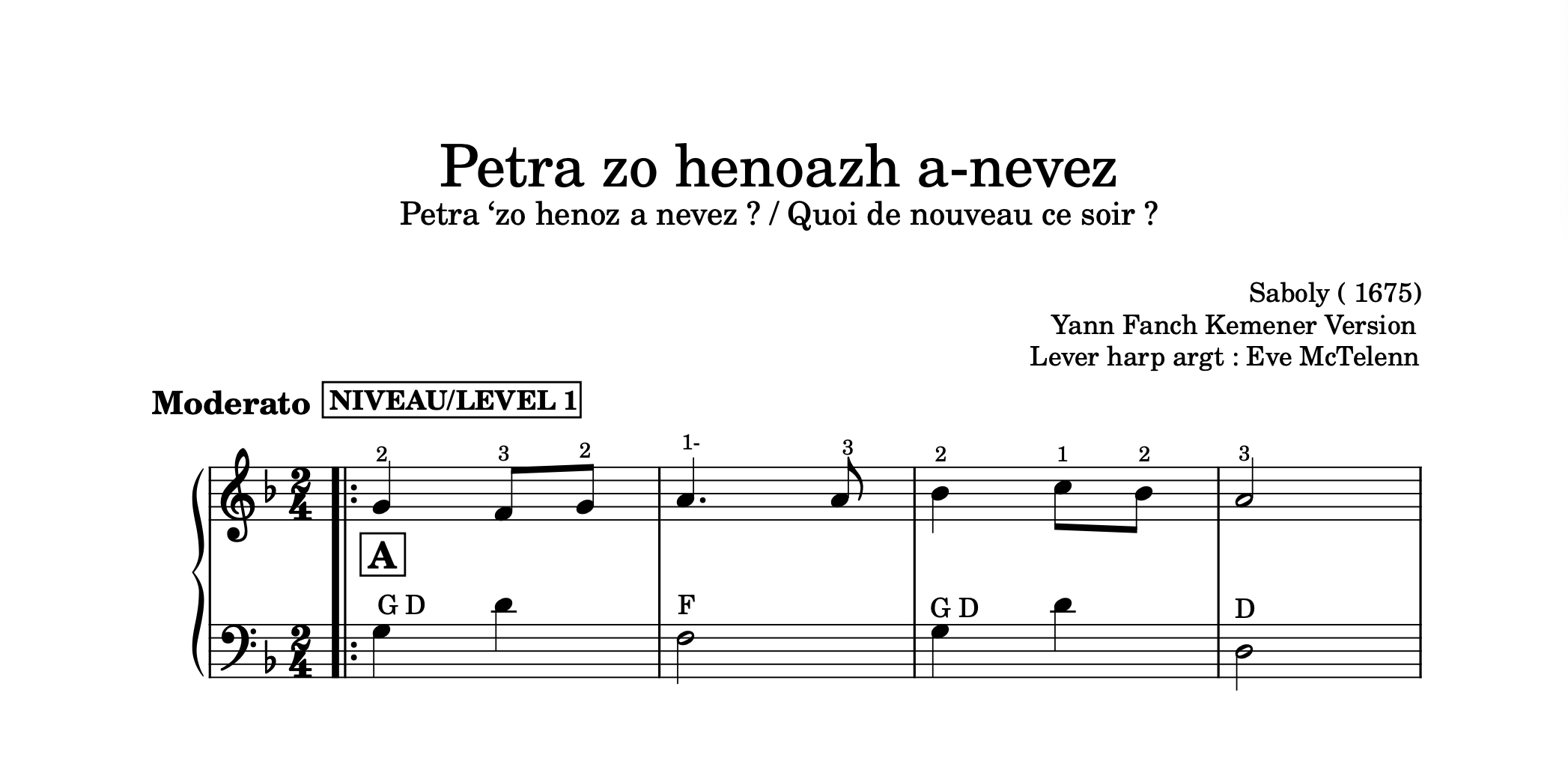 Arranged for Lever Harp by Eve McTelenn