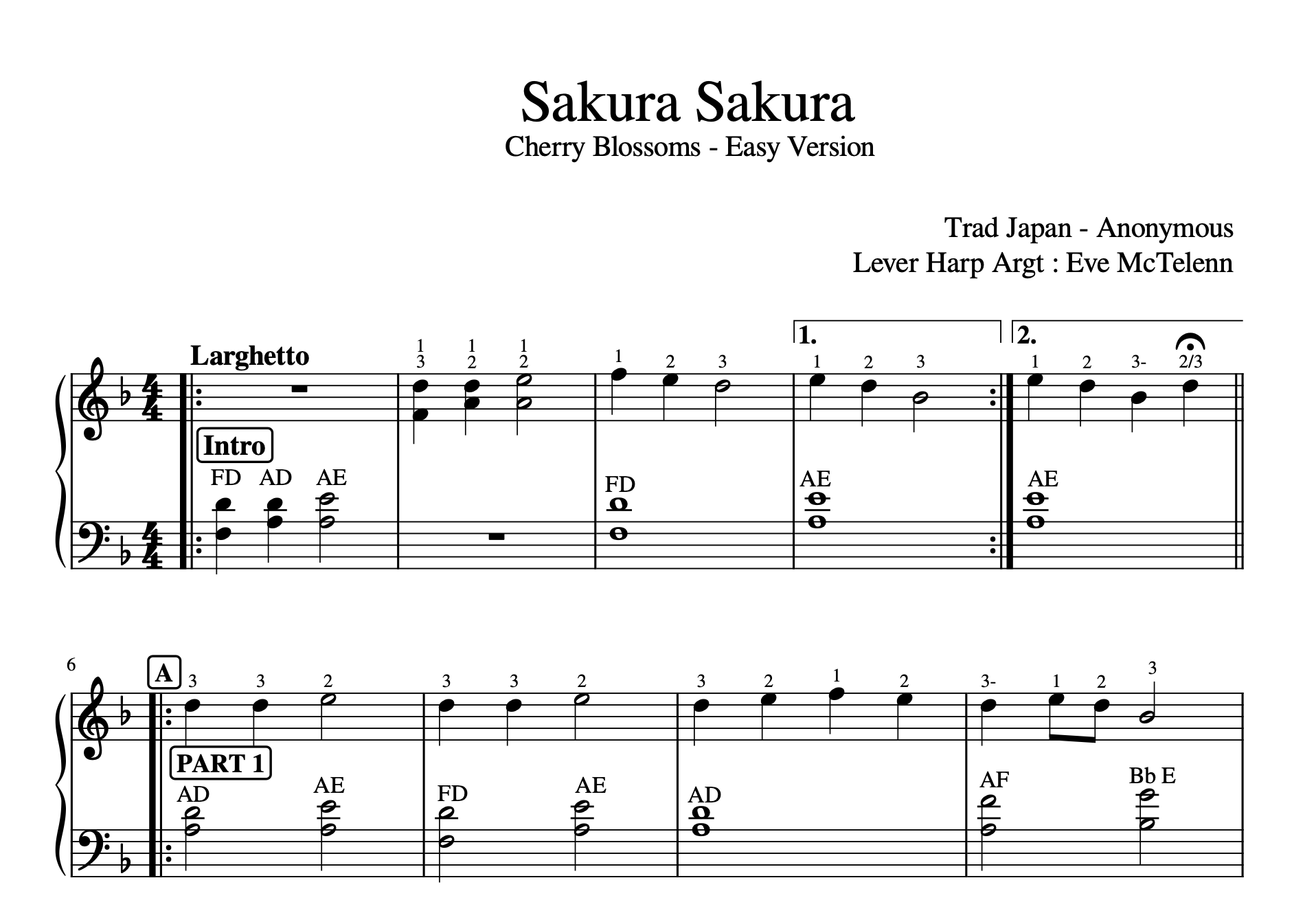 Key of D - 34 Strings Harp Friendly - Early Intermediate